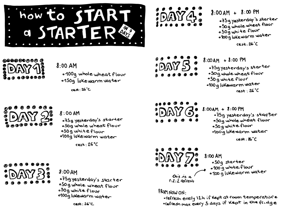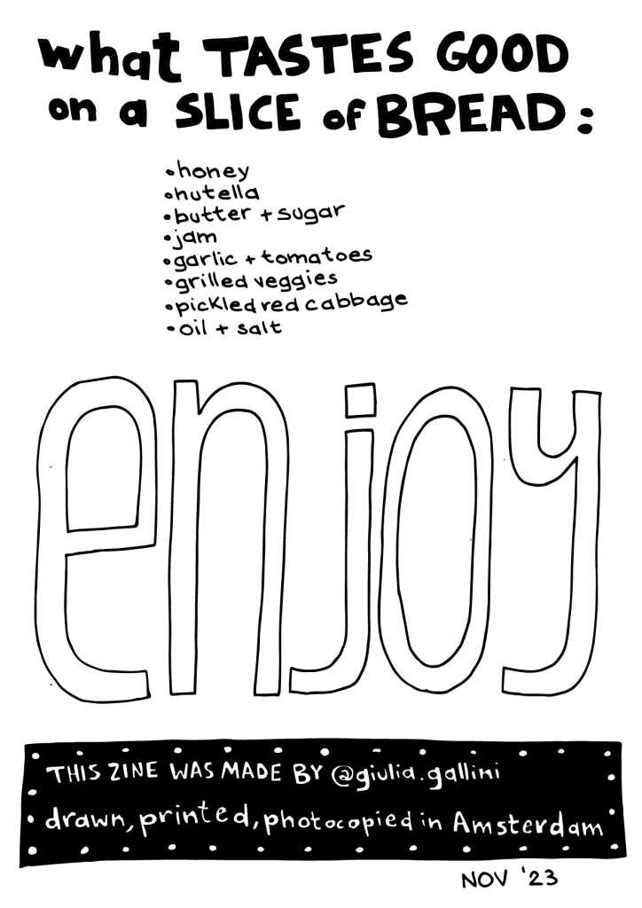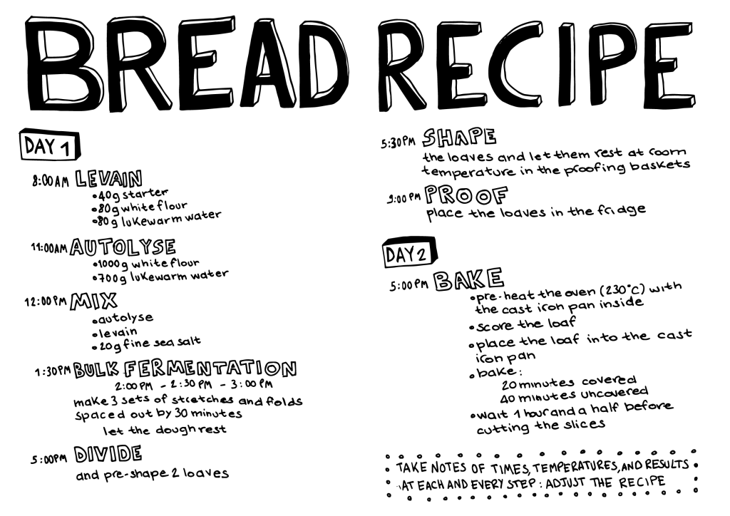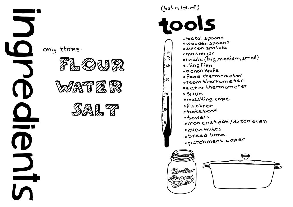 My sourdough bread obsession has resulted in a zine that sums up all the notes and the basics I’ve learned so far. I made two versions: a foldy zine (A3) and a seddle-stitched one. It can be downloaded, but if you want it printed and shipped to you (for a little contribution), send me an email!